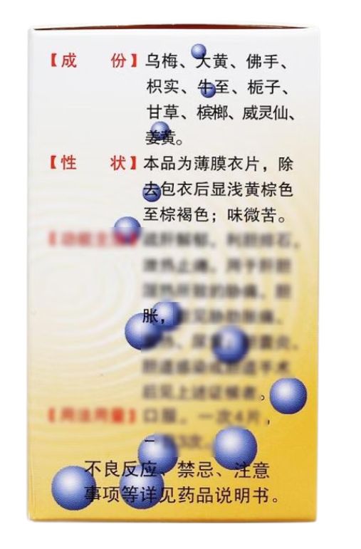 | 功能主治 | 疏肝解郁,利膽排石,清里泄熱,理氣止痛。用于膽囊炎,膽道感染,膽道手術(shù)后綜合癥屬肝膽濕熱證者。 |