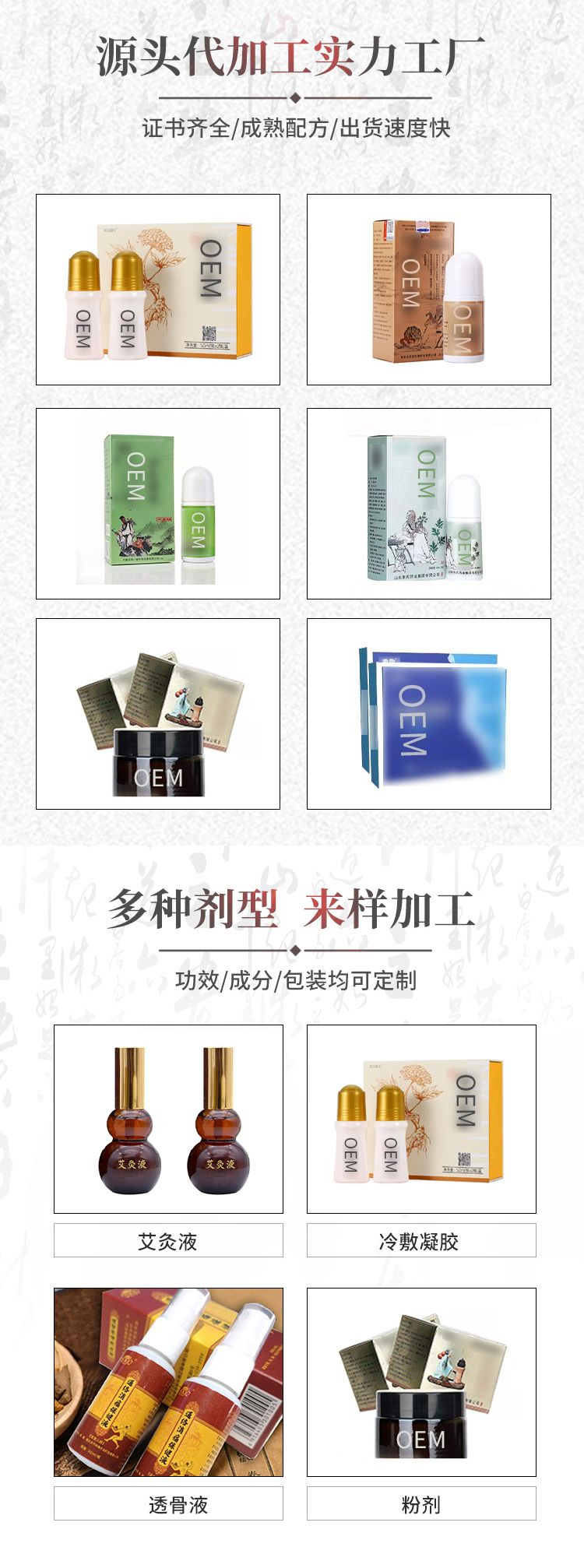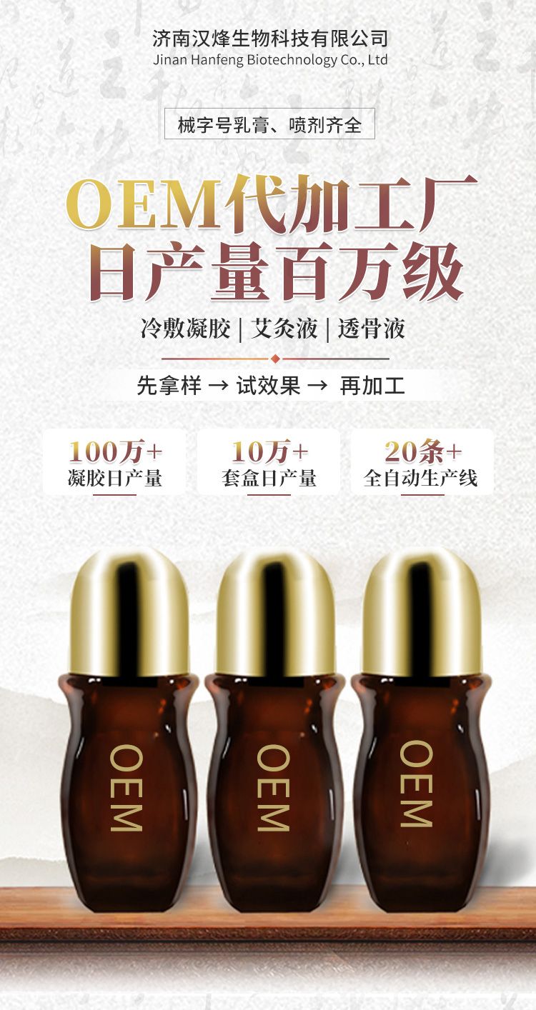 | 補充說明 | 光子冷敷凝膠代加工 頸肩腰腿涂抹型艾灸液 乳膏噴劑代加工 |