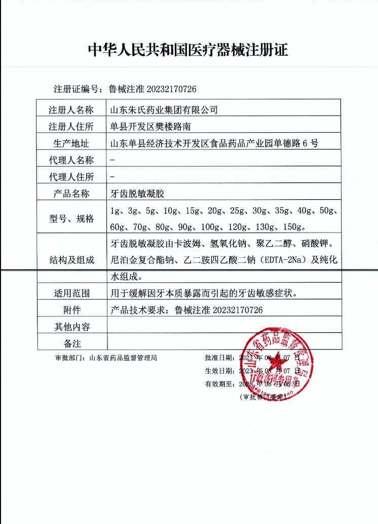 | 產(chǎn)品用途 | 用于緩解因牙本質(zhì)暴露而引起的牙齒敏感癥狀 |