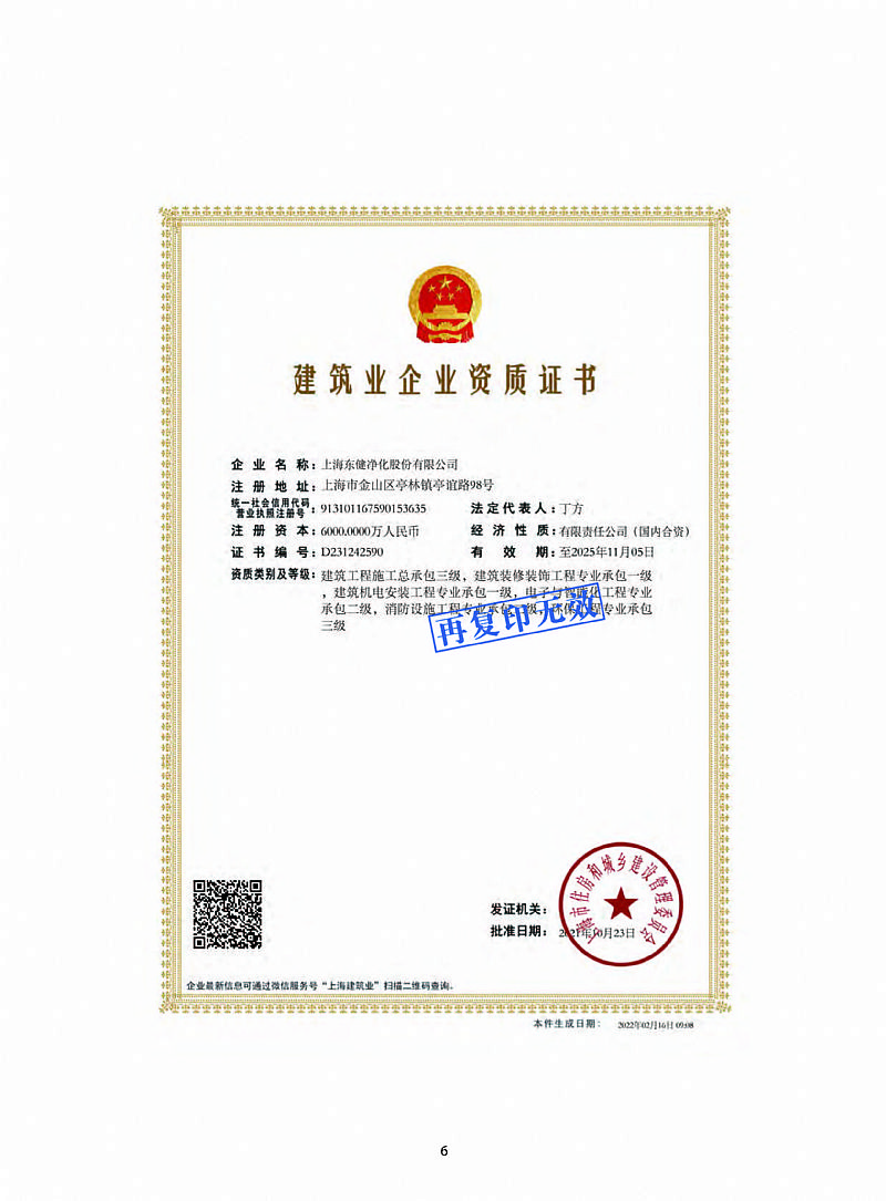 補(bǔ)充說(shuō)明 上海東健凈化股份有限公司2004年成立。主要從事手術(shù)部潔凈方案及空間規(guī)劃、施工設(shè)計(jì)深化、專業(yè)項(xiàng)目管理、設(shè)備采購(gòu)、工程施工、售后服務(wù)維保及手術(shù)室節(jié)能方案服務(wù),是國(guó)內(nèi)早期開(kāi)展醫(yī)院手術(shù)室節(jié)能、智能運(yùn)維等應(yīng)用技術(shù)和產(chǎn)品研究的單位,從事醫(yī)院手術(shù)室節(jié)能、智能運(yùn)維等應(yīng)用技術(shù)和產(chǎn)品研究開(kāi)發(fā)近20年,先后推出節(jié)能型去濕節(jié)能機(jī)、熱管式新風(fēng)機(jī)組、復(fù)合手術(shù)室、無(wú)龍骨手術(shù)室、醫(yī)院潔凈手術(shù)部智慧物聯(lián)管理平臺(tái)等產(chǎn)品,已經(jīng)廣泛應(yīng)用于潔凈手術(shù)室、潔凈廠房、生物實(shí)驗(yàn)室等領(lǐng)域,參與編制、制定了行業(yè)標(biāo)準(zhǔn),是上海市區(qū)域本行業(yè)。