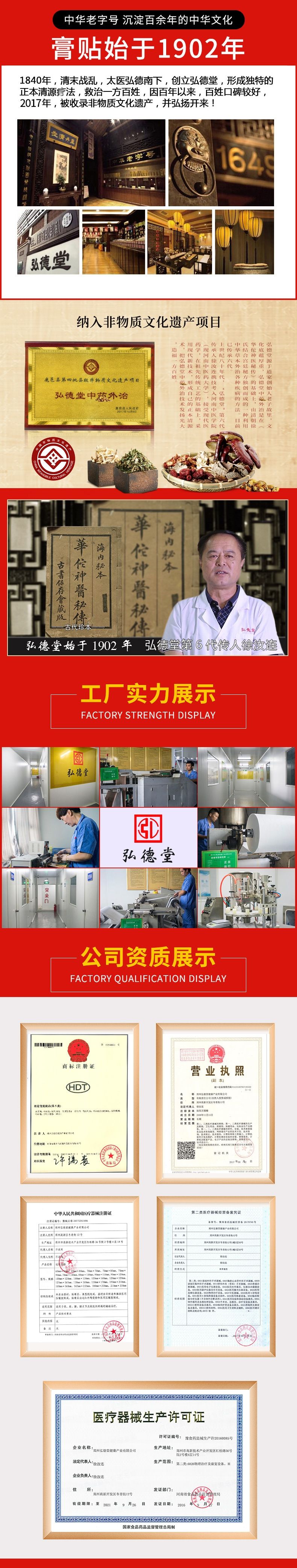 | 其它說明 | 鄭州弘德堂健康產(chǎn)業(yè)有限公司,成立于2006年,是一家從事生物醫(yī)藥、醫(yī)療器械、衛(wèi)生用品、消毒產(chǎn)品、化妝品、保健用品的高科技企業(yè),2012年成立了自己的專業(yè)研發(fā)公司“鄭州眾仁醫(yī)療器械研究院有限公司”,公司集科研、生產(chǎn)、銷售、經(jīng)營于一體,擁有經(jīng)河南省食品藥品監(jiān)督管理局檢測驗收的十萬級生產(chǎn)車間。 公司位于中部美麗的城市--鄭州市高新技術(shù)產(chǎn)業(yè)開發(fā)區(qū),擁有一批科研、管理、營銷方面的**人才,建立了獨(dú)立的研發(fā)中心和銷售中心;近年來,先后榮獲多項榮譽(yù)--“中國優(yōu)質(zhì)產(chǎn)品”、二類醫(yī)療器械生產(chǎn)許可證、醫(yī)療器械經(jīng)營許可證、消毒產(chǎn)品生產(chǎn)許可證、化妝品生產(chǎn)許證和多個產(chǎn)品批件。開發(fā)出二十余種有獨(dú)立知識產(chǎn)權(quán)的健康精品。 鄭州弘德堂健康產(chǎn)業(yè)有限公司秉承“弘醫(yī)濟(jì)生,德澤天下”的經(jīng)營理念,本著“一切為了患者健康”的經(jīng)營宗旨。始終把質(zhì)量放在首位,公司所用原材料,均選自天然無污染的中藥生產(chǎn)基地或進(jìn)口原料。巨資引進(jìn)先進(jìn)的超臨界萃取技術(shù),使藥材的生物活性大大提高。 “但愿人間無疾病,何愁架上藥生塵”,弘德堂人,以“思利及人,康澤社會”為宗旨,以患者健康為己任,造就百姓信賴的健康精品,愿為廣大消費(fèi)者提供質(zhì)優(yōu)的產(chǎn)品和服務(wù)。 專業(yè)從事膏藥貼劑類、膏劑、粉劑、油劑、液體等產(chǎn)品的生產(chǎn)加工、招商代理。可加工產(chǎn)品:遠(yuǎn)紅外貼、肚臍貼、前列腺貼、痔瘡貼、腸胃貼、腹瀉貼、感冒貼、退熱貼、巴布貼、黑膏藥、暖宮貼、乳腺貼、咳喘貼、傳統(tǒng)手工膏藥等等。膏藥專家弘德堂,貼貼更健康! |