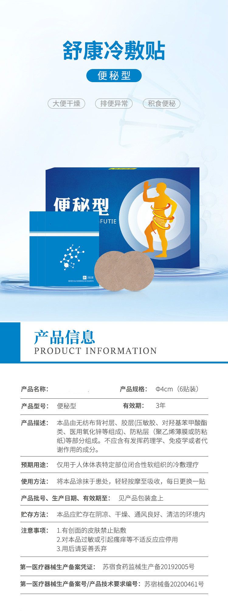 產(chǎn)品名稱: 穴位貼敷治療貼便秘貼