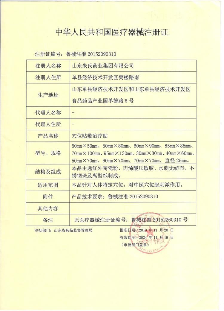 | 補充說明 | 詳見說明書秦魯藥業(yè)穴位貼敷治療貼小兒便秘貼牌定制代理代加工 【生產(chǎn)許可證】魯食藥監(jiān)械生產(chǎn)許20140053號 【產(chǎn)品技術(shù)要求】魯械注準(zhǔn)20152260310 【規(guī) 格】7cm×10cm×3貼×2袋 【生產(chǎn)單位】山東朱氏藥業(yè)集團有限公司 【生產(chǎn)地址】山東菏澤單縣經(jīng)濟技術(shù)開發(fā)區(qū) 其它說明 請勿留言,不然您的手機會被打爆,電話聯(lián)系:18661593511 |