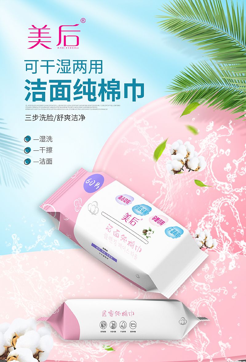 | 使用方法 | 潔濕用:純棉巾濕水后,配合清潔用品,能快速除化妝品殘留物、污拓、油脂等,令肌膚清凈透亮。 干用:用水洗面后,將棉柔巾輕輕按壓在臉上,快速吸收水分,倍感舒適清爽。 |