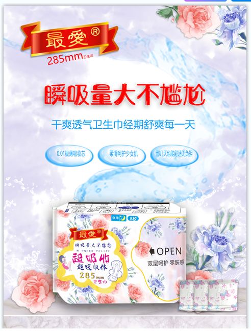 | 產(chǎn)品名稱 | 最愛純棉表層超薄衛(wèi)生巾(285mm夜用) |