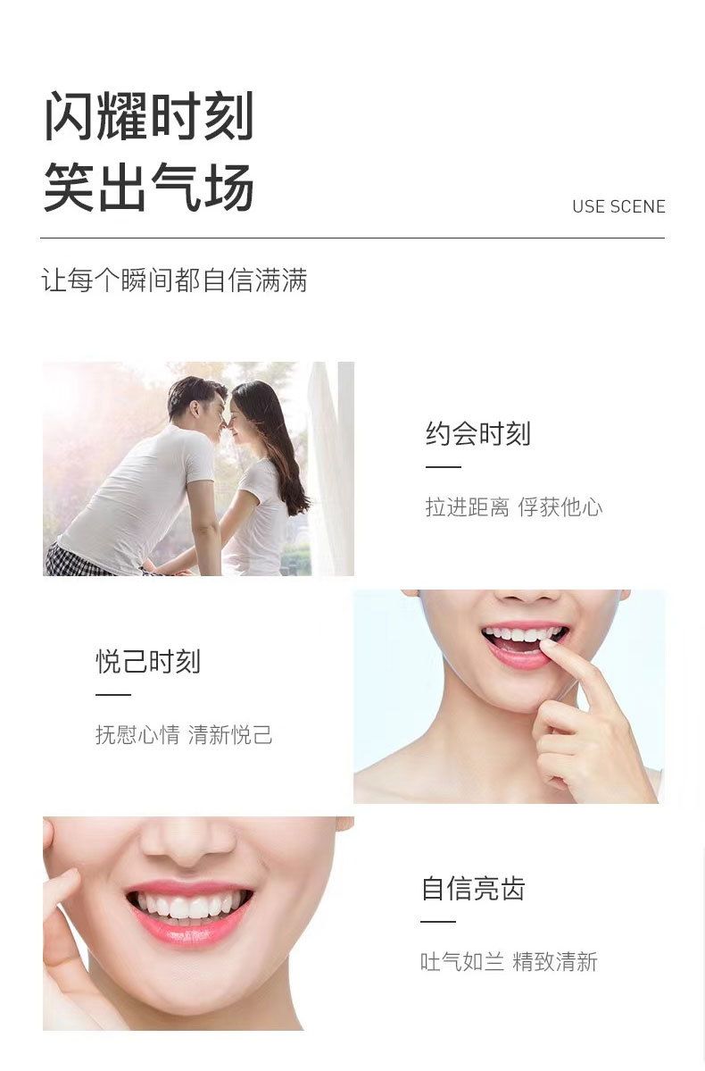 | 產(chǎn)品用途 | 亮白牙齒、清新口氣 |