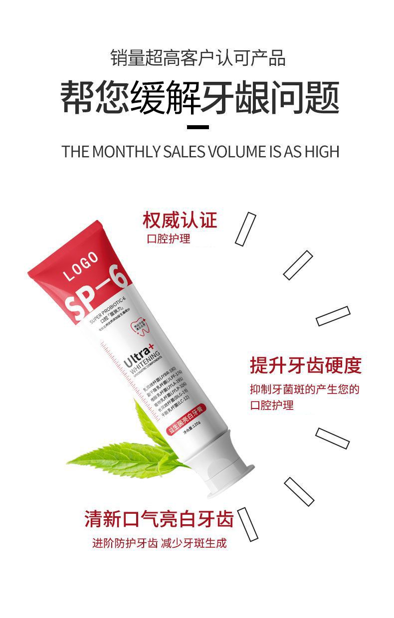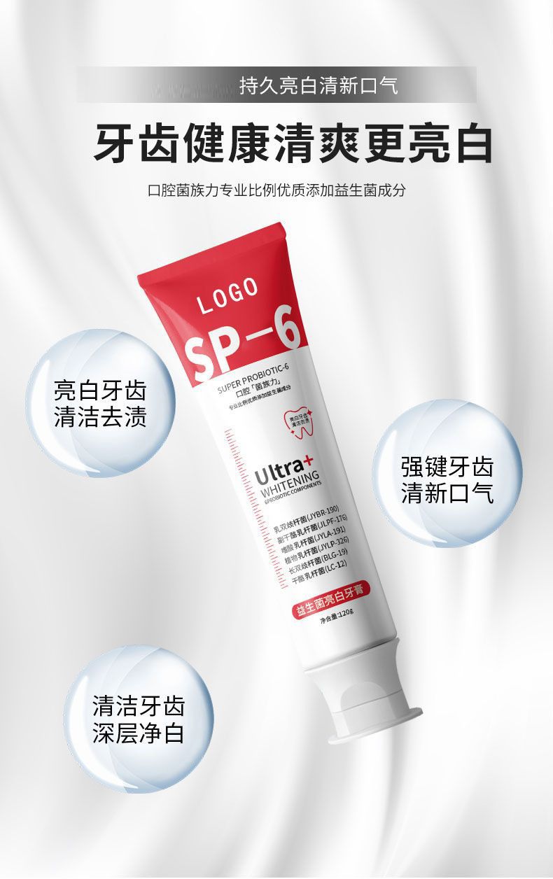 定制益生菌牙膏潔白香口舒爽亮白清新口氣去煙漬牙漬