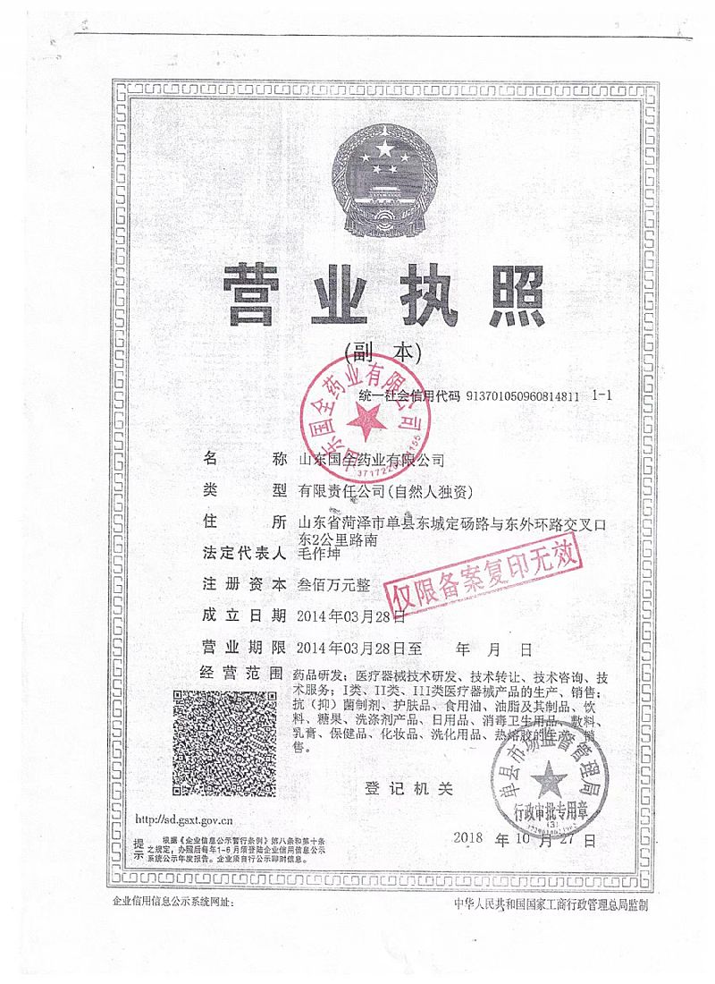 生產(chǎn)企業(yè): 山東國全藥業(yè)有限公司