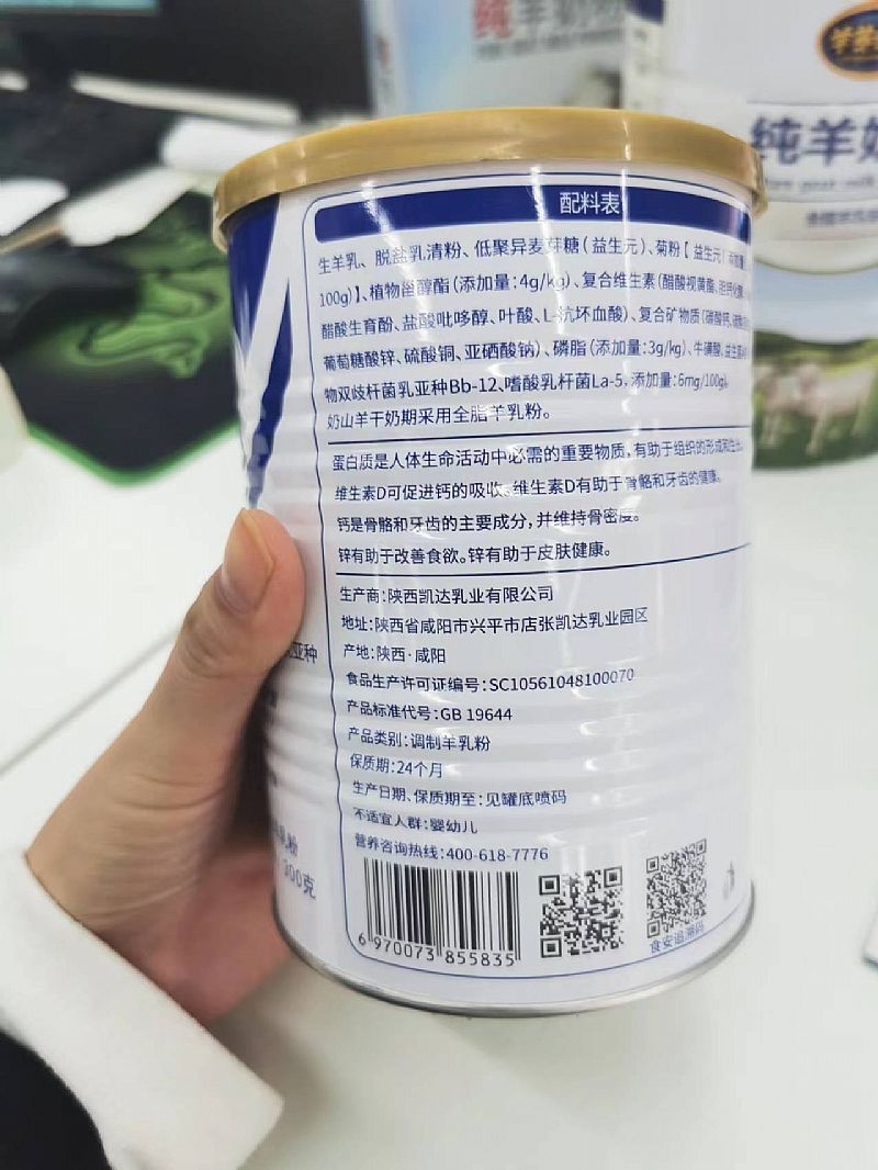| 補(bǔ)充說明 | 戴姆樂,暢億家,神果,羊之緣,羊唯嗞,贊普牧歌,圣漠雪源,羊奶粉,牦牛奶粉,陜西凱達(dá)乳業(yè)廠家 可代工貼牌生產(chǎn) 陜西凱達(dá)乳業(yè)有限公司始建于1978年,是一家集奶山羊養(yǎng)殖、乳制品研發(fā)、生產(chǎn)、銷售于一體的全產(chǎn)業(yè)鏈乳品企業(yè),公司總投資2.1余億元的乳粉潔凈廠方面積2700平方米,擁有生產(chǎn)線2條,全自動(dòng)包裝灌裝生產(chǎn)線6條,日處理鮮奶350噸,年設(shè)計(jì)產(chǎn)能1.5萬噸,以打造消費(fèi)者的奶粉品牌為目標(biāo),用產(chǎn)品盒服務(wù)幫助消費(fèi)者打造健康生活; 公司地址:陜西咸陽市; 暢億家 初乳益生菌 羊奶粉300g/盒;12盒/件; 凱達(dá)乳業(yè) 專注羊乳產(chǎn)品 純羊乳、初乳、有機(jī)奶、常規(guī)配方 →更優(yōu)化配方 →全渠道可做 成品提貨 代加工均可 全線產(chǎn)品招商 |