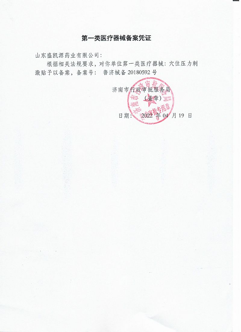 | 補(bǔ)充說明 | 【產(chǎn)品名稱】穴位壓力刺激貼 【規(guī)格型號】型號規(guī)格:A型、B型、C型、D型、E型、F型(直徑20mm、 直徑25mm、直徑30mm、直徑40mm、直徑50mm、25mm×25mm、30mm×30mm、50mm×50mm、50mm×70mm、60mm×90mm、70mm×100mm、80mm×120mm、90mm×130mm、100mm×140mm、140mm×180mm、) 【產(chǎn)品描述】通常由球狀體和醫(yī)用膠布組成。貼于人體穴位處,通過外力僅起壓力刺激作用。 【適用范圍】貼于人體穴位處,進(jìn)行外力刺激!具m用人群】A型:適用于頸、肩、腰、腿、關(guān)節(jié)等引起疼痛、酸脹麻木的外力刺激,通過穴位貼敷,穴位刺激達(dá)到舒筋通絡(luò)緩解疼痛的作用。B型:適用于感冒、咳嗽等引起呼吸系統(tǒng)的不適,通過穴位貼敷,穴位刺激達(dá)到止咳平喘,緩解咳嗽的作用。C型:適用于胃腸感冒,腹瀉等引起消化系統(tǒng)的不適,通過穴位貼敷穴位刺激達(dá)到溫脾健胃,止瀉,消化不良的作用。D型:適用于感冒、鼻塞、流涕等引起鼻炎、鼻竇炎的不適,通過穴位貼敷,穴位刺激達(dá)到舒緩癥狀的作用。E型:適用于前列腺炎等引起泌尿系統(tǒng)的不適,通過穴位貼敷,穴位刺激達(dá)到舒緩癥狀的作用。F型:適用于痛經(jīng)、慢性盆腔炎、產(chǎn)后腹痛等引起的不適,通過穴位貼敷,穴位刺激達(dá)到舒緩癥狀的作用。 【使用方法】 依據(jù)中醫(yī)穴位貼敷治療或貼敷療法的原理,根據(jù)不同病癥和型號選取相應(yīng)的穴位,清潔皮膚,揭掉貼片上的離型紙,以球狀體對準(zhǔn)穴位敏感點貼壓。每天更換1-2次,或遵遺囑。 【注意事項】 1、外用。 2、孕婦、嬰幼兒、糖尿病患者、人體內(nèi)有金屬物、局部皮膚有破損者禁用。 3、貼敷部位若有皮膚過敏反應(yīng),應(yīng)暫停使用,防止感染,待過敏現(xiàn)象消失后可繼續(xù)使用。 4、兒童須在成人監(jiān)護(hù)下使用。 【貯 藏】密封,置常溫干燥處,避免陽光直射。 更多 穴位壓力刺激貼 |