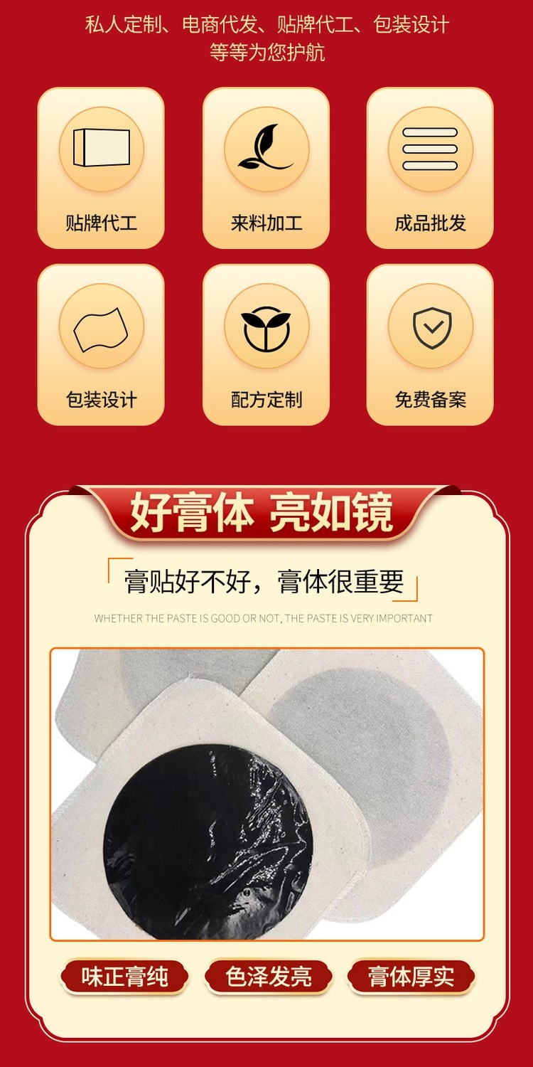 | 通用名稱 | 傳統(tǒng)黑膏貼/膏藥貼/oem貼牌代加工 |