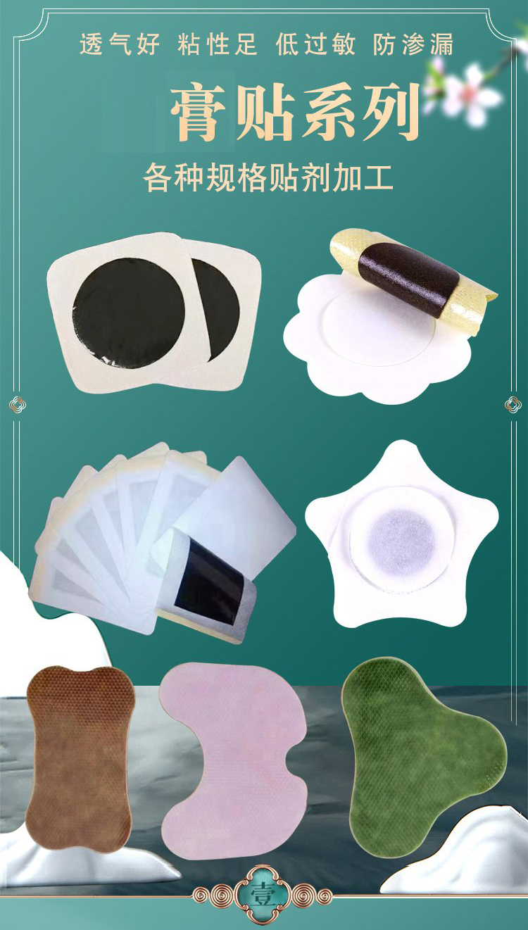 | 通用名稱 | 各種規(guī)格膏藥貼/異形貼/穴位貼/黑膏貼/oem貼牌代加工 |