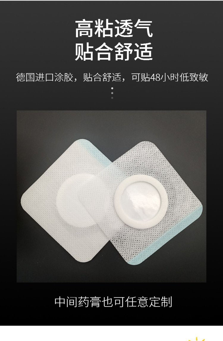 | 補(bǔ)充說明 | 更多 穴位壓力刺激貼(無紡布)/小兒肚臍貼/三伏貼/三九貼 中標(biāo)產(chǎn)品 是 產(chǎn)品用途 本品針對人體特定穴位,對中醫(yī)穴位起刺激作用。 主要成分 本品由遠(yuǎn)紅外陶瓷粉、丙烯酸壓敏膠、水刺無紡布、不銹鋼珠及離型紙制成。 作用機(jī)理 穴位貼敷治療貼的壓敏膠布剝離強(qiáng)度不小于1.0N/cm,持粘性應(yīng)不大于2.5mm,遠(yuǎn)紅外發(fā)射波長范圍8um-15μm,法向比輻射率≥75%。 使用方法 1、清潔相應(yīng)穴位,先以拇指依次揉按相應(yīng)穴位,每穴1~2分鐘,范圍由小到大,力量由輕到重,探尋敏感點(diǎn)。2、確認(rèn)包裝無破損后,打開包裝,取出穴位貼敷治療貼,將貼劑的隔離膜撕去,以鋼珠對準(zhǔn)相應(yīng)穴位敏感點(diǎn)貼壓,1片/穴、天,每日適度按壓3~5次,每次3~5分鐘,1個療程為10天,療程間隔2~3天。 |