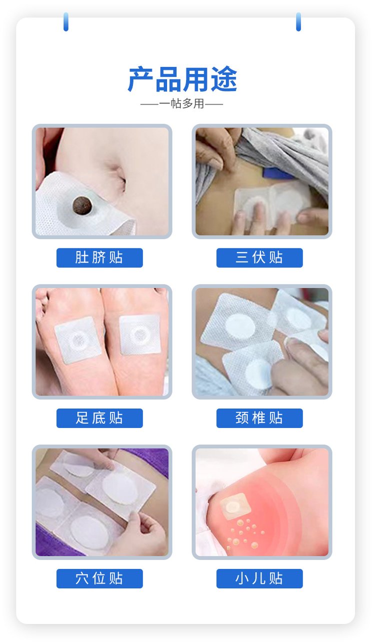 | 補充說明 | 更多 無紡布穴位壓力刺激貼小兒肚臍貼三伏貼三九貼直供醫(yī)院藥店診所oem貼牌代加工中標產(chǎn)品 是 產(chǎn)品用途 本品針對人體特定穴位,對中醫(yī)穴位起刺激作用。 主要成分 本品由遠紅外陶瓷粉、丙烯酸壓敏膠、水刺無紡布、不銹鋼珠及離型紙制成。 使用方法 、清潔相應穴位,先以拇指依次揉按相應穴位,每穴1~2分鐘,范圍由小到大,力量由輕到重,探尋敏感點。2、確認包裝無破損后,打開包裝,取出穴位貼敷治療貼,將貼劑的隔離膜撕去,以鋼珠對準相應穴位敏感點貼壓,1片/穴、天,每日適度按壓3~5次,每次3~5分鐘,1個療程為10天,療程間隔2~3天 |