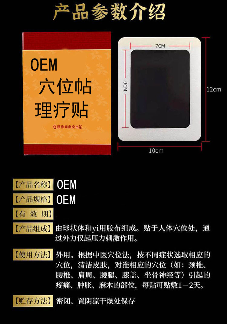 | 補(bǔ)充說明 | 更多 頸肩腰腿穴位貼理療貼批發(fā)代理直供醫(yī)院藥店診所oem貼牌代加工 |