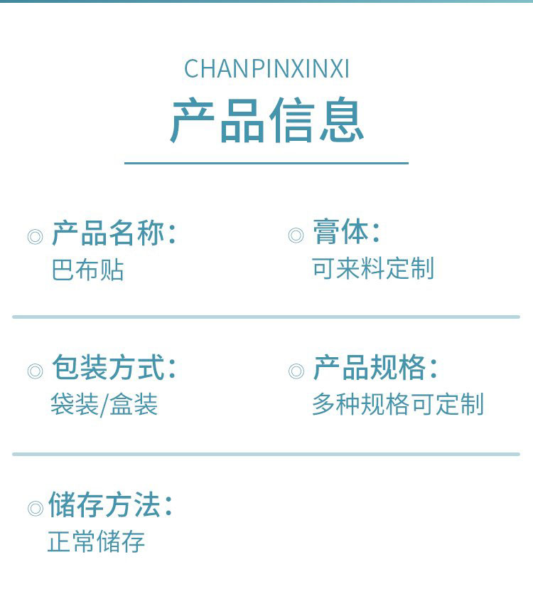 | 補(bǔ)充說(shuō)明 | 更多 巴布貼膏貼理療貼廠家批發(fā)代理資質(zhì)齊全直供直發(fā)醫(yī)院藥店診所oem貼牌代加工 |