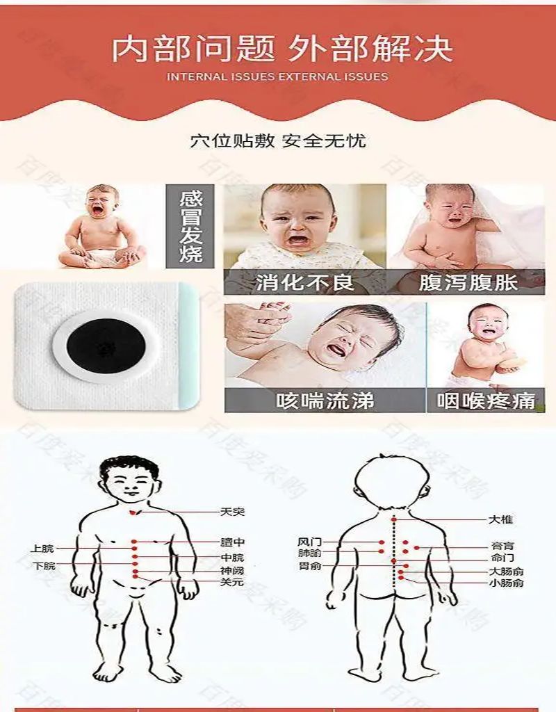 | 補(bǔ)充說明 | 更多 穴位壓力刺激貼定制定做肚臍貼批發(fā)代理廠家供貨OEM加工規(guī)格齊全 產(chǎn)品用途 本品針對(duì)人體特定穴位,對(duì)中醫(yī)穴位起刺激作用。 主要成分 本品由遠(yuǎn)紅外陶瓷粉、丙烯酸壓敏膠、水刺無紡布、不銹鋼珠及離型紙制成。 作用機(jī)理 穴位貼敷治療貼的壓敏膠布剝離強(qiáng)度不小于1.0N/cm,持粘性應(yīng)不大于2.5mm,遠(yuǎn)紅外發(fā)射波長范圍8um-15μm,法向比輻射率≥75%。 使用方法 1、清潔相應(yīng)穴位,先以拇指依次揉按相應(yīng)穴位,每穴1~2分鐘,范圍由小到大,力量由輕到重,探尋敏感點(diǎn)。2、確認(rèn)包裝無破損后,打開包裝,取出穴位貼敷治療貼,將貼劑的隔離膜撕去,以鋼珠對(duì)準(zhǔn)相應(yīng)穴位敏感點(diǎn)貼壓,1片/穴、天,每日適度按壓3~5次,每次3~5分鐘,1個(gè)療程為10天,療程間隔2~3天。 |