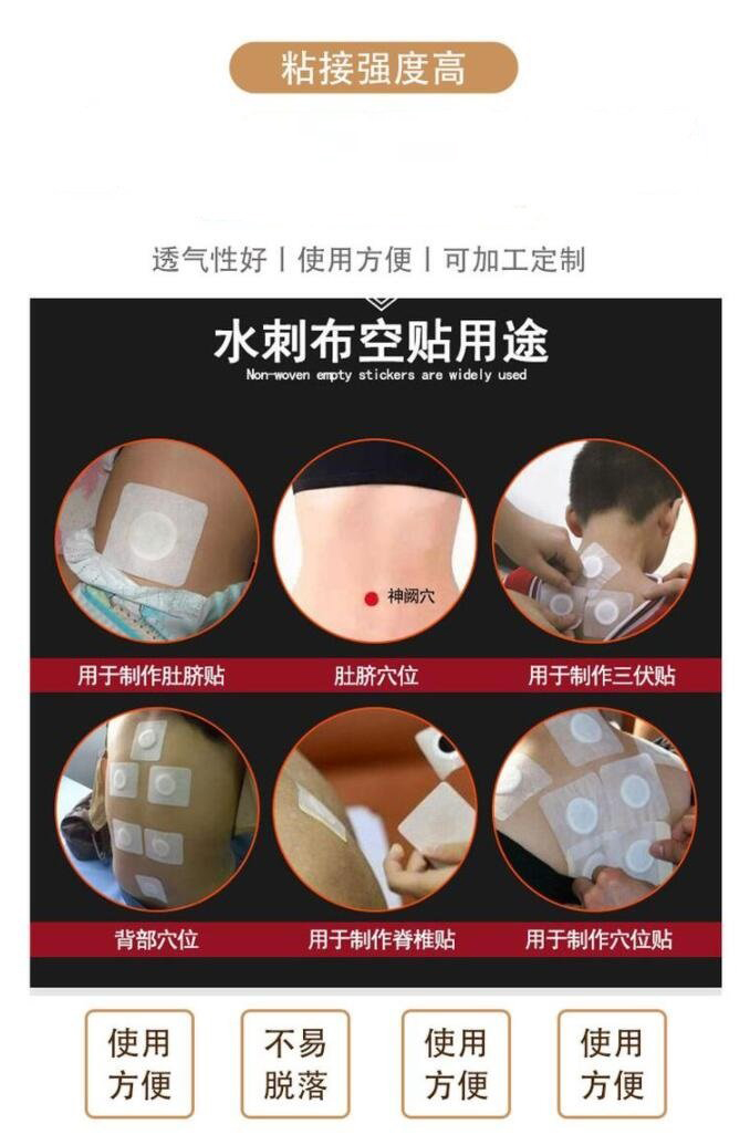 | 補(bǔ)充說明 | 更多 膏布空貼三伏貼穴位貼直供醫(yī)院藥店診所oem貼牌代加工中標(biāo)產(chǎn)品 是 產(chǎn)品用途 本品針對人體特定穴位,對中醫(yī)穴位起刺激作用。 主要成分 本品由遠(yuǎn)紅外陶瓷粉、丙烯酸壓敏膠、水刺無紡布、不銹鋼珠及離型紙制成。 使用方法 、清潔相應(yīng)穴位,先以拇指依次揉按相應(yīng)穴位,每穴1~2分鐘,范圍由小到大,力量由輕到重,探尋敏感點(diǎn)。2、確認(rèn)包裝無破損后,打開包裝,取出穴位貼敷治療貼,將貼劑的隔離膜撕去,以鋼珠對準(zhǔn)相應(yīng)穴位敏感點(diǎn)貼壓,1片/穴、天,每日適度按壓3~5次,每次3~5分鐘,1個(gè)療程為10天,療程間隔2~3天 |