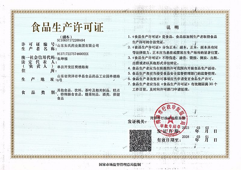 生產(chǎn)企業(yè): 山東朱氏藥業(yè)集團有限公司