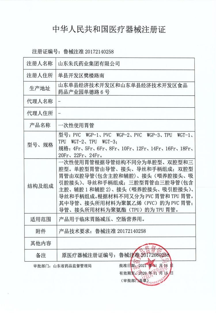 | 產(chǎn)品名稱 | 一次性使用胃管 |