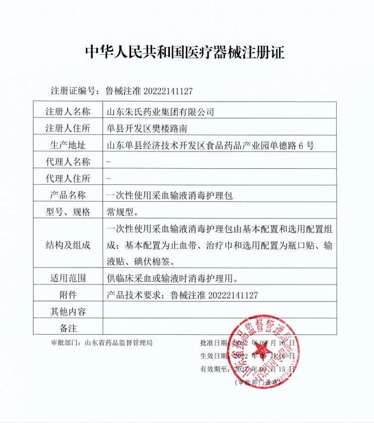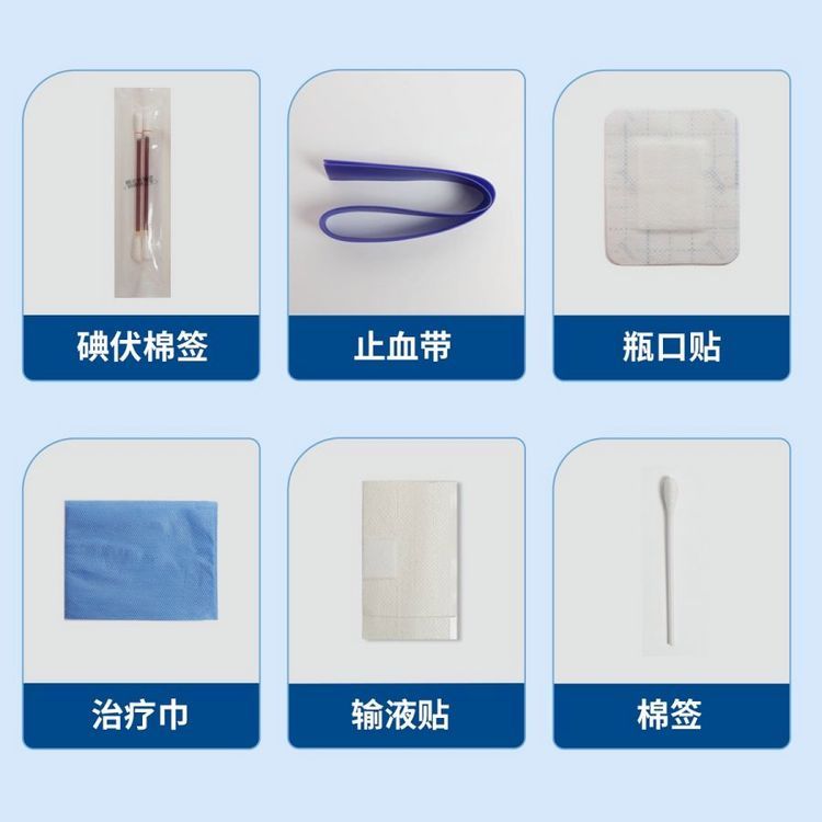 | 主要成分 | 一次性使用采血輸液消毒護(hù)理包由基本配置和選用配置組成;基本配置為止血帶、治療巾和選用配置為瓶口貼、輸液貼、碘伏棉簽。 |