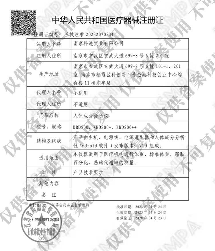 | 補(bǔ)充說(shuō)明 | 人體成分分析儀KBD500++設(shè)備采用Android系統(tǒng),配有觸摸屏,測(cè)試者可根據(jù)智能語(yǔ)音提示自主完成測(cè)量?稍赑C端同步進(jìn)行信息管理。 人體成分分析儀適用科室: 臨床醫(yī)學(xué)、健康管理、康復(fù)科、社區(qū)健康、營(yíng)養(yǎng)科、運(yùn)動(dòng)醫(yī)學(xué) 人體成分分析儀KBD500++功能特點(diǎn): 健康管理 通過(guò)定期測(cè)量和長(zhǎng)周期管理,監(jiān)測(cè)和評(píng)價(jià)人體成分的平衡性,謹(jǐn)防代謝性疾病發(fā)生。 人體成分分析儀KBD500++優(yōu)勢(shì): 測(cè)量快速 使用8點(diǎn)接觸式電極,通過(guò)在手和腳上分離電壓電極和電流電極,減少測(cè)量誤差,**測(cè)量數(shù)據(jù)的準(zhǔn)確性和一致性。 人性化交互 配備7英寸彩色觸摸屏,用戶界面簡(jiǎn)單易用,操作方便快捷;語(yǔ)音提示;檢測(cè)數(shù)據(jù)可視化,可打印紙質(zhì)報(bào)告。 體驗(yàn)舒適 人體工程學(xué)設(shè)計(jì),手柄電極觸感好,底座穩(wěn)固**。 功能豐富 提供9種體型判定,適用于中國(guó)人的營(yíng)養(yǎng)和運(yùn)動(dòng)處方。 |