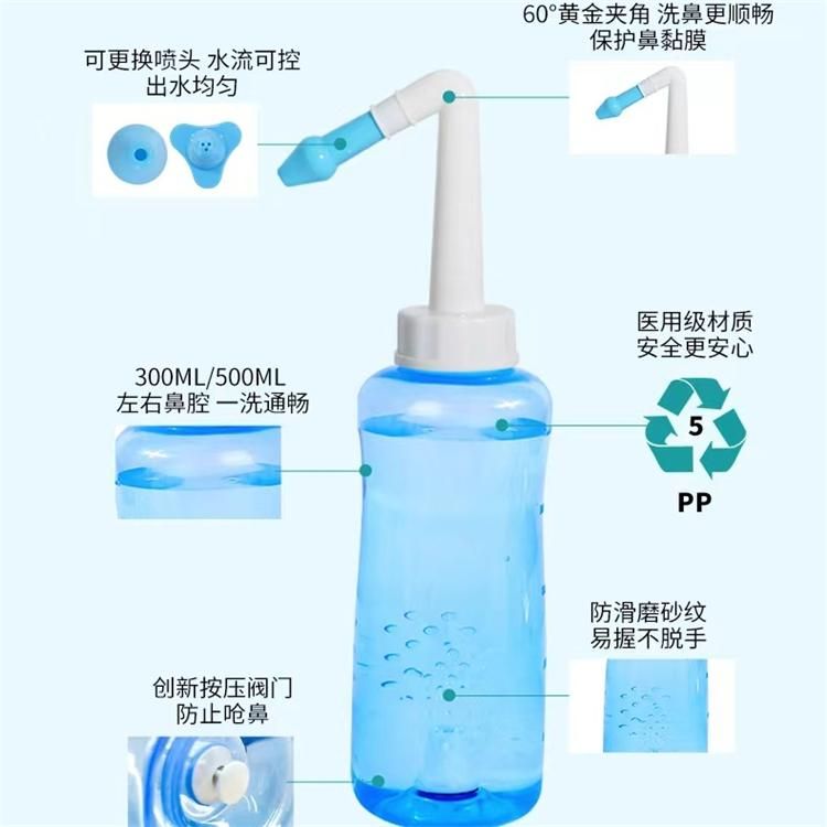 | 使用方法 | 1、在產(chǎn)品使用前應(yīng)用開(kāi)水浸泡2min; 2、輕輕將沖洗頭放入鼻孔,以食指輕按沖洗頭; 3、重復(fù)以上步驟清潔另一鼻孔; 4、每次用完抹干待用。 |