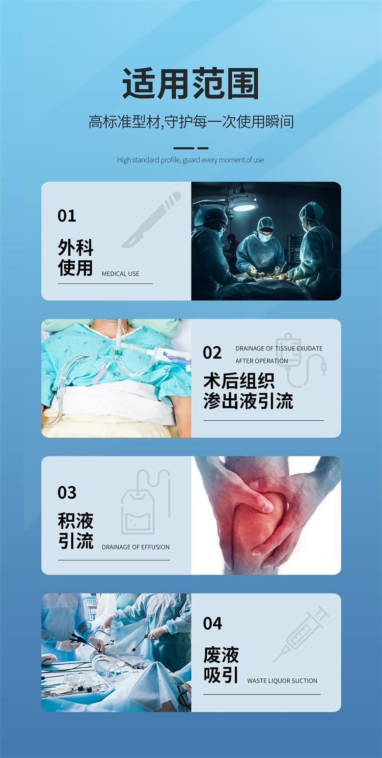 | 產(chǎn)品用途 | 主要供體表創(chuàng)傷或切口引流用。 |