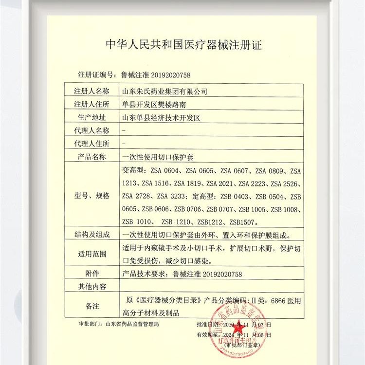 | 補(bǔ)充說(shuō)明 | 【注意事項(xiàng)、警示以及提示的內(nèi)容】 1、本產(chǎn)品僅限一次性使用,用后銷(xiāo)毀; 2、單包裝破損、內(nèi)有異物禁止使用。 3、本產(chǎn)品經(jīng)環(huán)氧乙烷滅菌,滅菌有效期二年;超過(guò)使用期限的本產(chǎn)品禁止使用。 4、必須由經(jīng)過(guò)培訓(xùn)的醫(yī)師操作。 5、與該產(chǎn)品的規(guī)格尺寸不適應(yīng)的厚腹腔患者禁止使用。 6、手術(shù)切口過(guò)小,切口保護(hù)套置入環(huán)放置困難禁止使用。 7、利器接觸,可能造成通道膜劃傷破裂的禁止使用。 【禁忌癥】對(duì)聚氨酯或硅膠材料過(guò)敏者禁止使用。 【運(yùn)輸及儲(chǔ)存條件】本產(chǎn)品貯藏在無(wú)腐蝕性氣體、干燥、避免日曬、通風(fēng)條件良好、清潔的環(huán)境內(nèi);運(yùn)輸及搬運(yùn)時(shí)應(yīng)注意小心輕放。 |