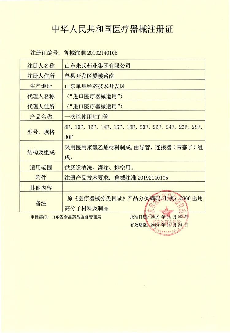 | 產(chǎn)品名稱 | 一次性使用肛門管 |