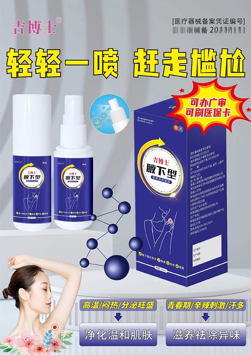 | 補(bǔ)充說明 | 一類器械號(hào)狐臭噴霧,可辦廣審,手續(xù)齊全,可上藥店,診所,連鎖,醫(yī)院 |