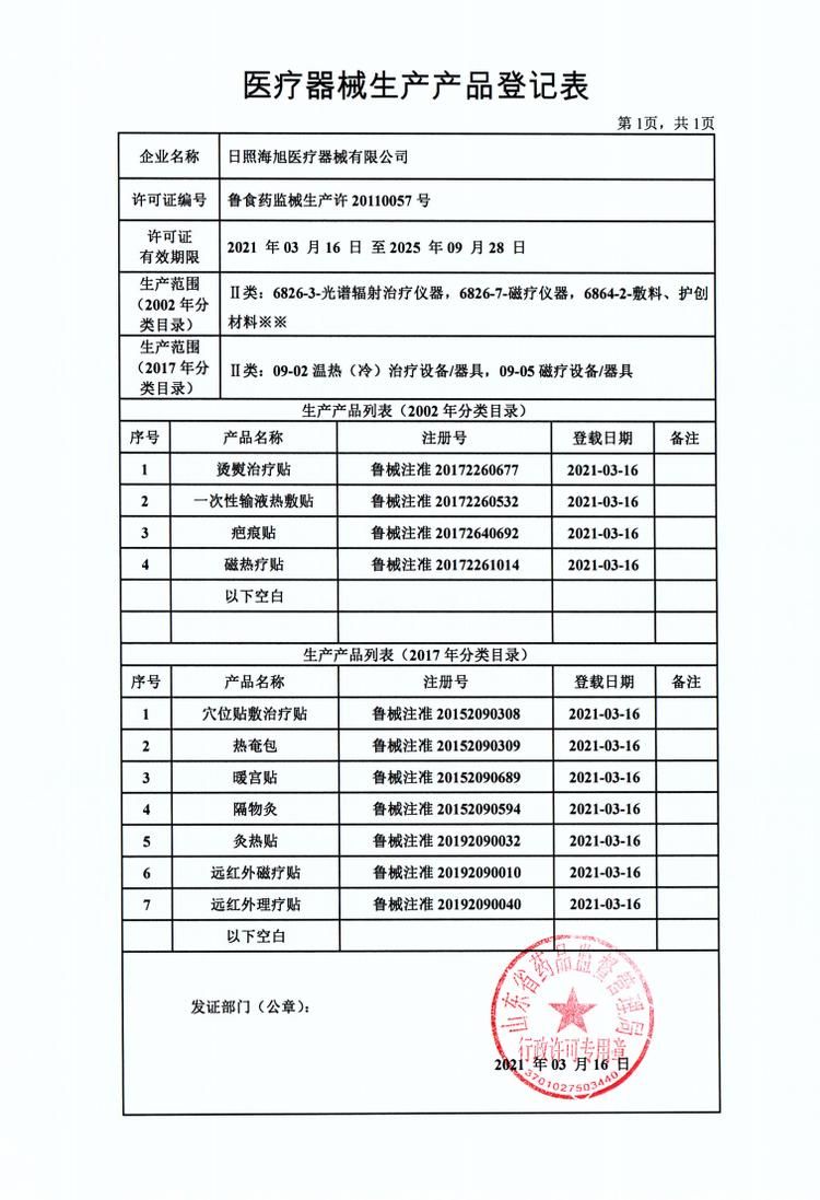 生產(chǎn)企業(yè): 日照海旭醫(yī)療器械有限公司