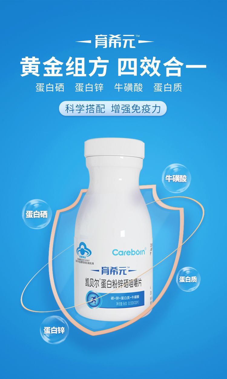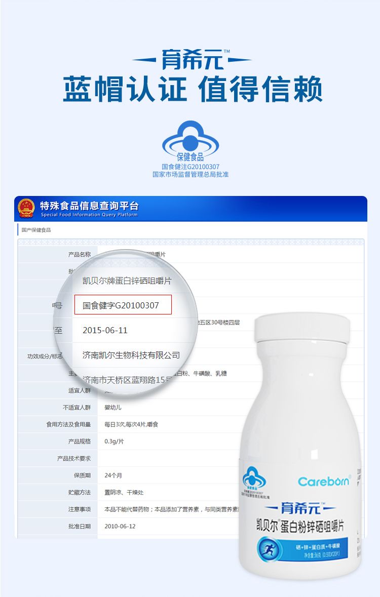 產(chǎn)品名稱: 育希元凱貝爾蛋白粉鋅硒咀嚼片
