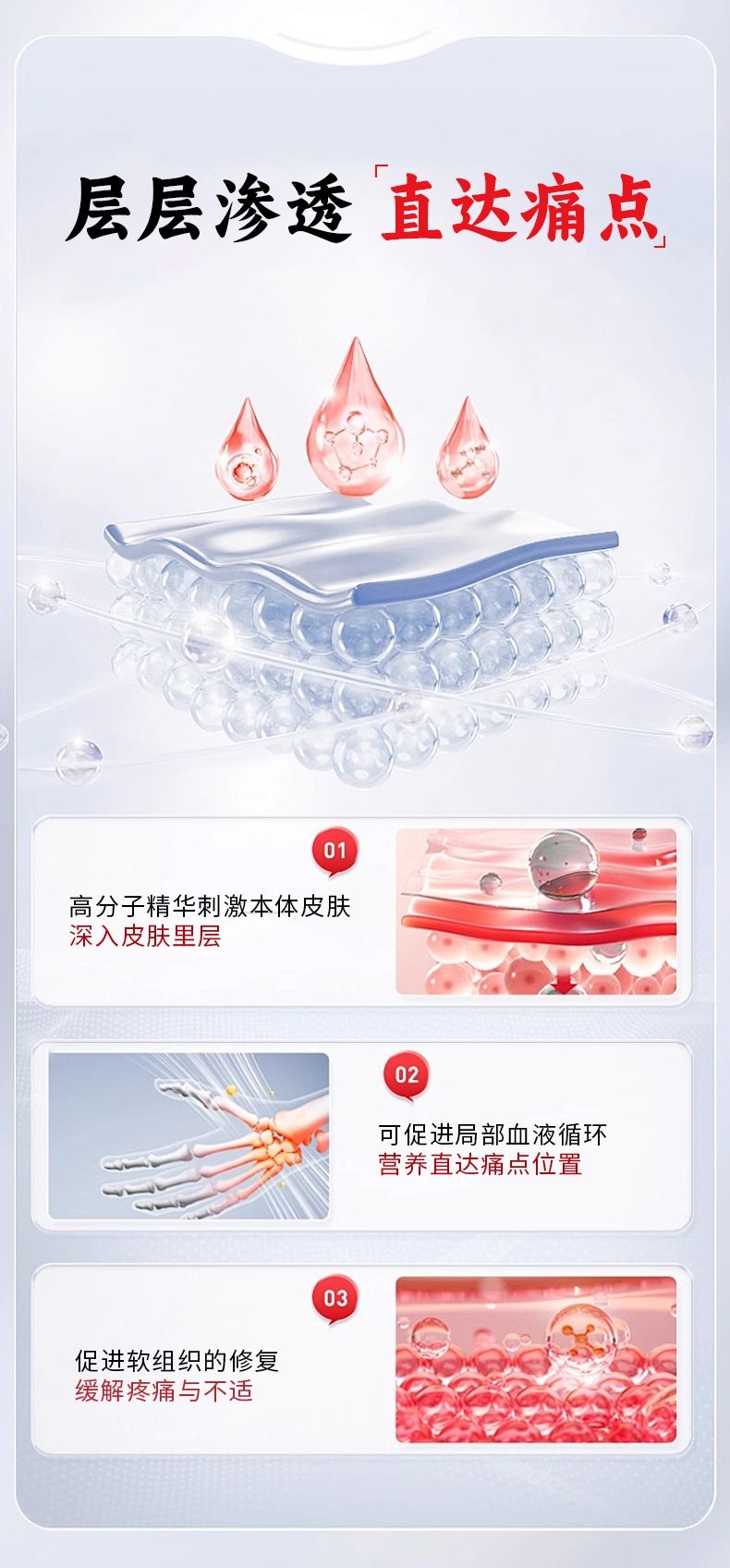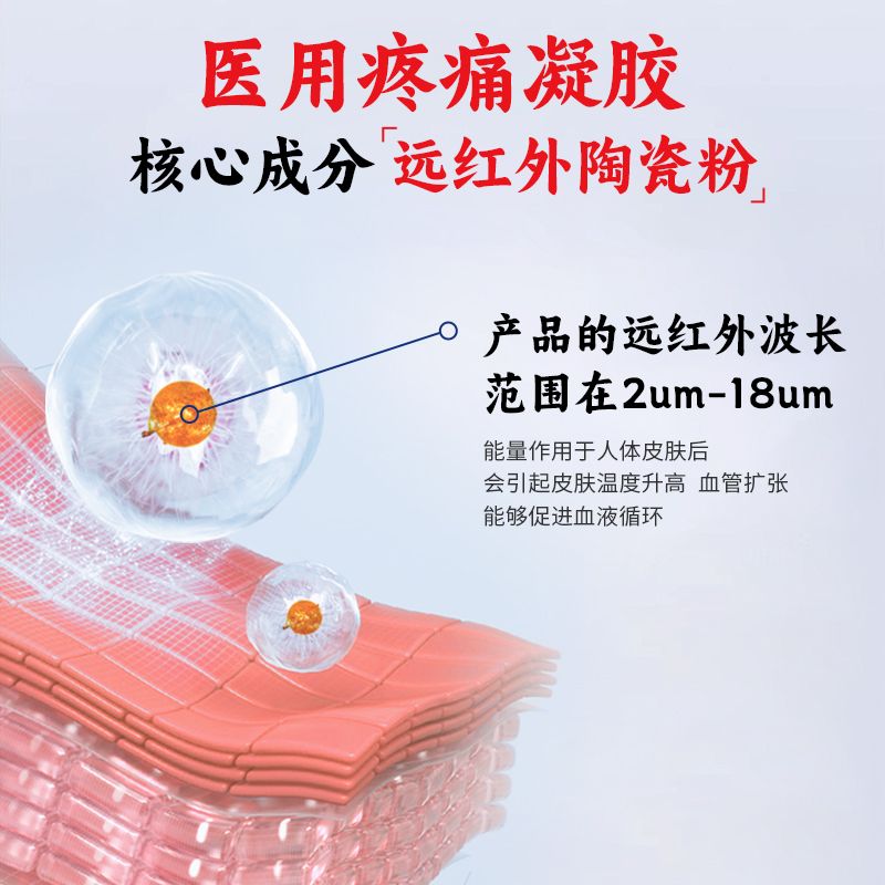 | 產(chǎn)品賣點 | 該產(chǎn)品可促進(jìn)局部血液循環(huán)、輔助消炎和止痛。適用于腰肌勞損、關(guān)節(jié)炎(慢性期)、骨質(zhì)增生、頸椎病、肩周炎、腰椎間盤突出、腱鞘炎、扭挫傷(非急性期)等引起不適癥狀的輔助治療。 |