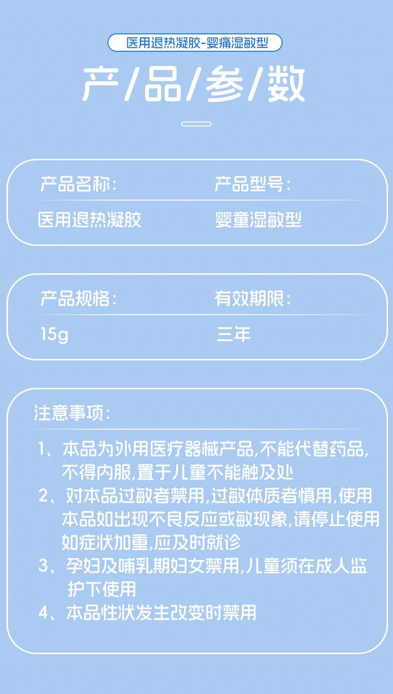 | 產(chǎn)品名稱 | 醫(yī)用退熱凝膠-嬰童濕敏型 |