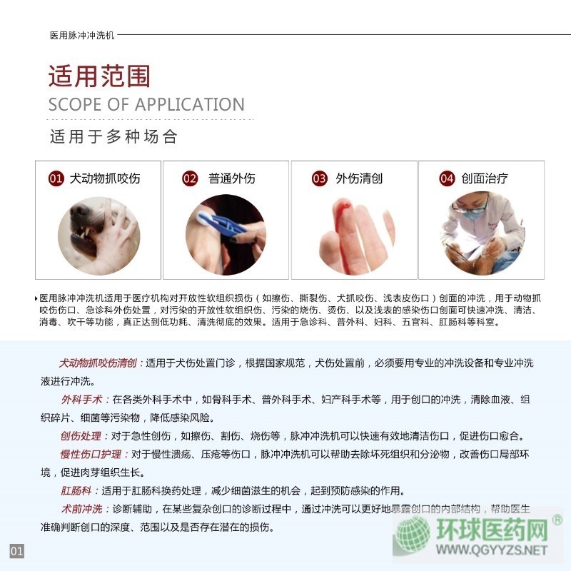 | 產(chǎn)品用途 | 適用于醫(yī)療機構(gòu)對開放性軟組織損傷(如擦傷、撕裂傷、犬抓咬傷、淺表皮傷口)創(chuàng)面的沖洗。 |
