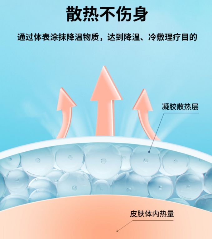 | 作用機(jī)理 | 利用物理原理,利用凝膠中的水分氣化帶走熱量,通過體表涂抹降溫物質(zhì),達(dá)到降溫、冷敷理療的作用。瓶口采用滾珠結(jié)構(gòu),貼回皮膚涂抹,輕輕一滾均勻涂抹,溫和不傷皮膚,衛(wèi)生方便不沾手。 |