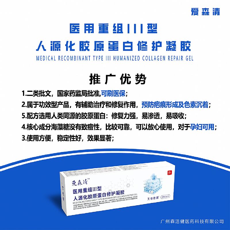 | 產(chǎn)品名稱 | 醫(yī)用重組Ⅲ型人源化膠原蛋白修護凝膠 |