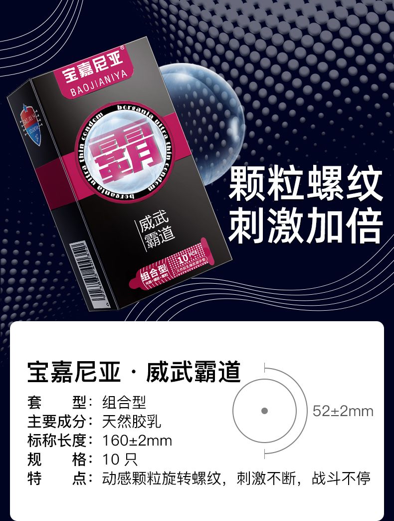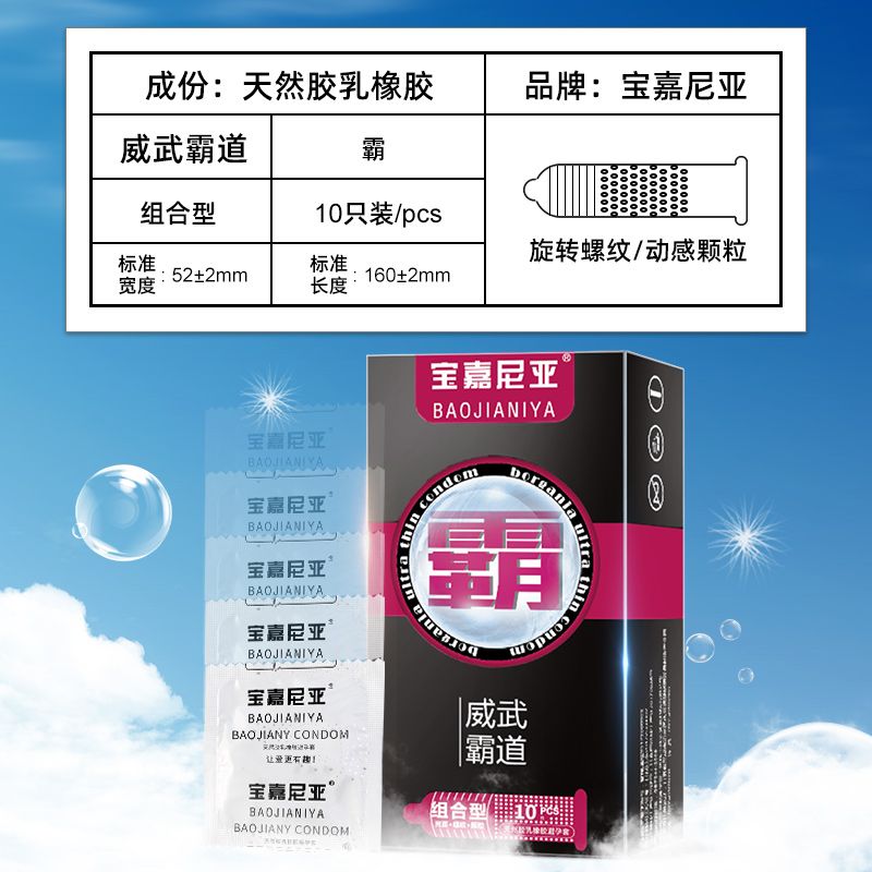 | 補(bǔ)充說明 | 寶嘉尼亞避孕套采用天然乳膠為原料經(jīng)加工制成,潤滑劑為二甲基硅油,對天然乳膠過敏者慎用,或使用前咨詢醫(yī)生,該避孕套為一次性用品,切勿重復(fù)使用,使用后請妥善棄置。該避孕套潤滑劑中不含殺精劑或藥物成分。寶嘉尼亞避孕套在正確使用下,有助于降低受孕風(fēng)險及減少某些性傳播疾病感染的風(fēng)險。 |