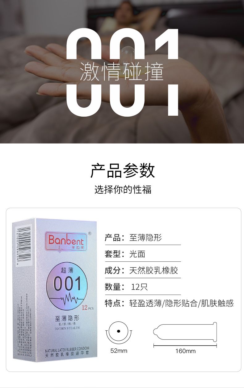 | 補充說明 | 半邊天避孕套采用天然乳膠為原料經加工制成,潤滑劑為二甲基硅油,對天然乳膠過敏者慎用,或使用前咨詢醫(yī)生,該避孕套為一次性用品,切勿重復使用,使用后請妥善棄置。該避孕套潤滑劑中不含殺精劑或藥物成分。半邊天避孕套在正確使用下,有助于降低受孕風險及減少某些性傳播疾病感染的風險。 |