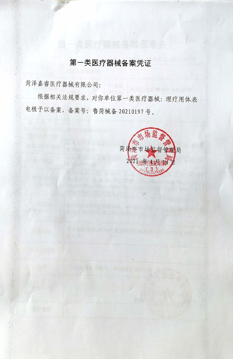 生產(chǎn)企業(yè): 菏澤嘉睿醫(yī)療器械有限公司