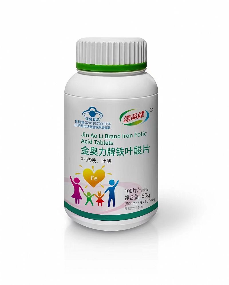 | 補充說明 | 【原料】富馬酸亞鐵,葉酸 【輔料】微晶纖維素,乳糖,麥芽糊精,食用玉米淀粉,羧甲基淀粉鈉,硬脂酸鎂,包衣預混劑(羥丙甲纖維素,聚乙二醇6000) 【功效成分及含量】每片含:鐵 9.24mg 葉酸 300μg 【適宜人群】需要補充鐵、葉酸的成人、孕婦、乳母 【不適宜人群】3歲以下人群 【保健功能】補充鐵、葉酸 【食用量及食用方法】每日1次,每次1片,食用方法:溫水送服 【規(guī)格】500mg/片 【貯藏方法】密封,置于陰涼、干燥防潮處 【保質期】24個月 |