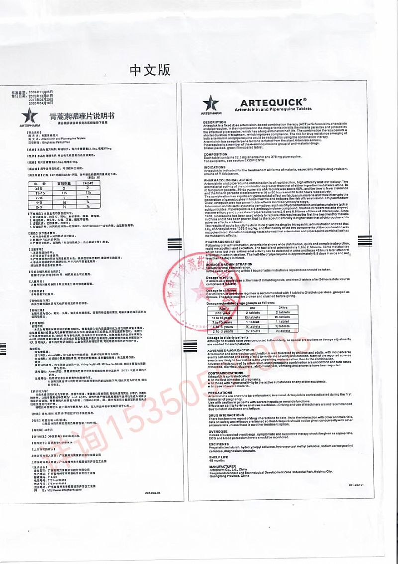 | 英文名稱 | 青蒿素哌喹片 |