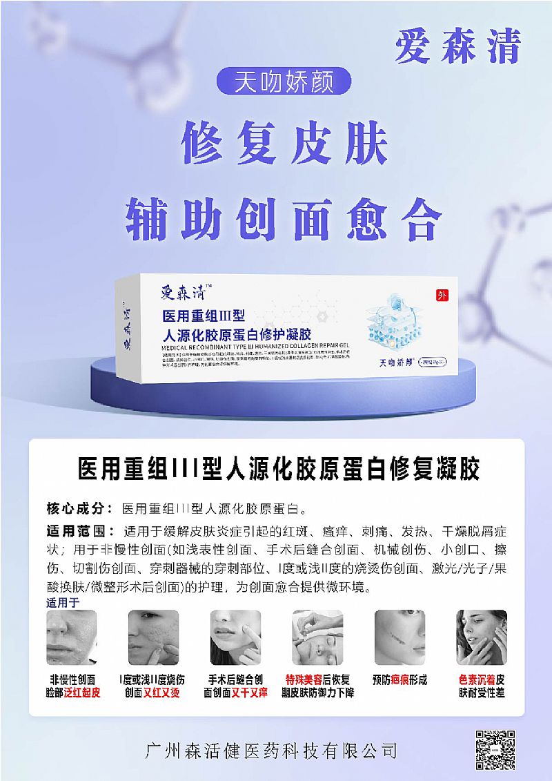 | 產(chǎn)品名稱 | 醫(yī)用重組III型人源化膠原蛋白修護(hù)凝膠 |