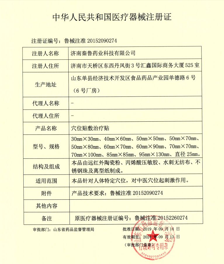 | 產(chǎn)品賣點 | 三伏貼生產(chǎn)廠家濟(jì)南秦魯藥業(yè)科技有限公司面向全國招商,產(chǎn)品文號為二類器械文號,中標(biāo)掛網(wǎng),可以點配送,產(chǎn)品品質(zhì)保障,詳詢15610189280 |