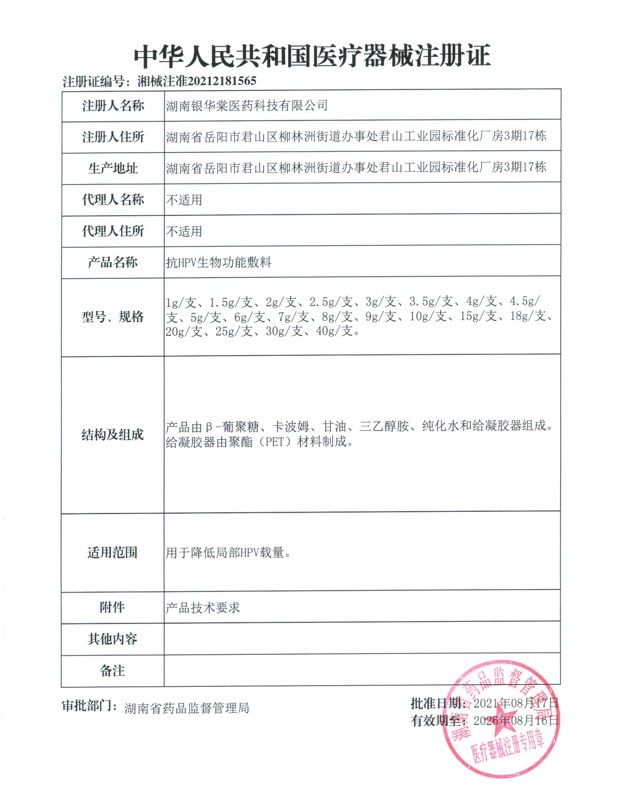 產(chǎn)品名稱: 愛清康™;抗hpv生物功能敷料