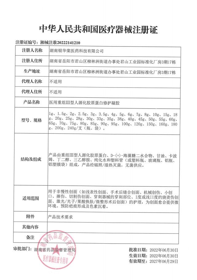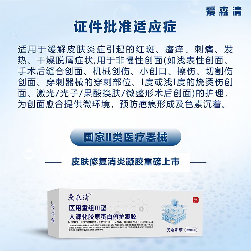 | 產(chǎn)品名稱 | 醫(yī)用重組Ⅲ型人源化膠原蛋白修護(hù)凝膠 |