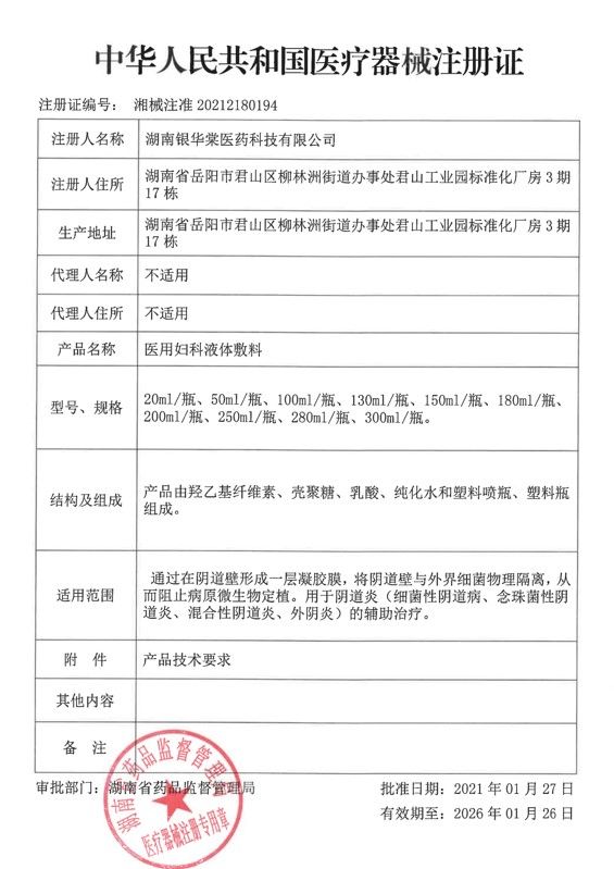 | 產(chǎn)品名稱 | 醫(yī)用婦科液體敷料 |