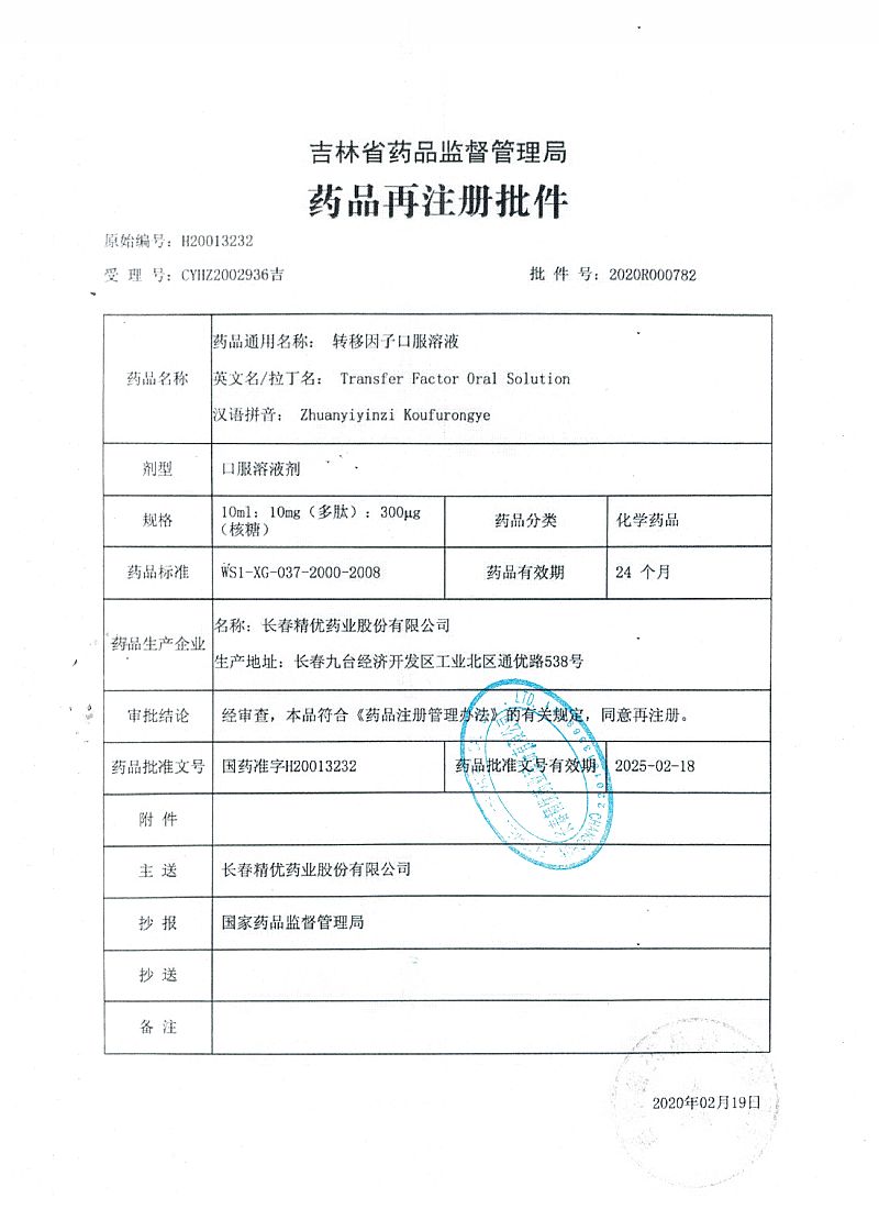 通用名稱: 轉(zhuǎn)移因子口服溶液