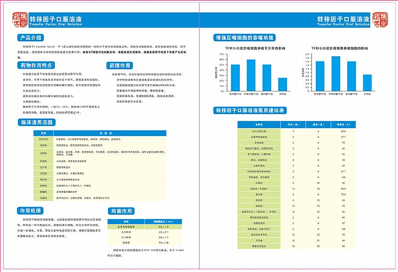 | 補充說明 | 轉(zhuǎn)移因子口服溶液 主要成份本品系用健康豬或牛脾臟為原料,制成的含多肽氨基酸和多核苷酸混合物的溶液。 適應(yīng)癥本品用于某些抗生素難以控制的病毒性或霉菌性細胞內(nèi)感染的輔助治療(如帶狀皰疹、流行性乙型腦炎、白色念珠菌感染、病毒性心肌炎,小兒輪狀病毒性腸炎等);亦可作為惡性腫瘤的輔助治療劑;本品可用于濕疹、血小板減少、多次感染綜合癥、慢性皮膚黏膜真菌病等免疫缺陷疾病。 不良反應(yīng)尚不明確。 禁忌1.禁與熱的飲料、食品同服,以免影響療效。 2.混濁或變色勿用。 注意事項1.服藥期間忌食魚、蝦、酒、綠豆、西紅柿等食物,以免影響療效。 2.按照用法用量使用,服藥過程中出現(xiàn)不良反應(yīng)應(yīng)停藥并向醫(yī)師咨詢長期服用應(yīng)向醫(yī)師咨詢。 3.成人及兒童應(yīng)在醫(yī)師指導下服用。 4.藥品性狀發(fā)生改變時禁止服用。 5.兒童應(yīng)在成人監(jiān)護下使用。 6.請將此藥品放在兒童不能接觸到的地方。 7.如正在服用其他藥品,使用本品前請咨詢醫(yī)師或藥師。 孕婦及哺乳期婦女用藥應(yīng)在醫(yī)師指導下服用。 兒童用藥應(yīng)在醫(yī)師指導下服用。 老人用藥應(yīng)在醫(yī)師指導下服用。 藥物相互作用與利尿酸、速尿、乙噻嗪、三氯甲噻嗪等利尿劑并用時,其利尿作用可增強本品所含甘草酸二銨的排鉀作用,而導致血清鉀值的下降,應(yīng)特別注意觀察血清鉀值的測定。 藥物過量未進行該項實驗且無可靠參考文獻。 藥物毒理本品是中藥甘草有效成分的提取物,具有一定的抗炎、保護肝細胞膜及改善肝功能的作用。藥理實驗證明,小鼠口服能減輕因四氯化碳、硫代乙酰銨和D-氨基半乳酸引起的血清丙氨基轉(zhuǎn)移酶(ALT)及天冬氨酸氨基轉(zhuǎn)移酶(AST)升高。還能明顯減輕D-氨基半乳酸對肝臟的損傷和改善免疫因子對肝臟的慢性損傷。 藥代動力學靜脈注射后約有92%以上的藥物與血漿蛋白結(jié)合,平均滯留時間為8小時;在體內(nèi)以肺、肝、腎分布*高,其它組織分布很低,主要通過膽汁從糞便中排出,部分從呼吸道以二氧化碳形式排出,尿中排出為少量。。 執(zhí)行標準WS1-XG-037-2000-2008 |